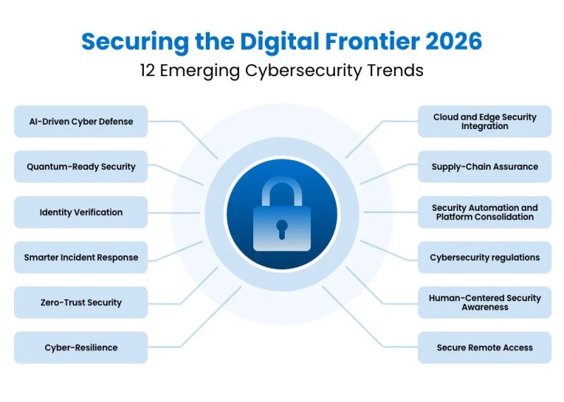 In 2026, cybersecurity trends center on an AI arms race, identity becoming the new perimeter, and stricter regulations, with threats like agentic AI attacks, deepfakes, advanced ransomware, and "harvest now, decrypt later" quantum threats rising. Defenders are countering with Zero Trust, AI-powered Security Operations (SOCs), Continuous Threat Exposure Management (CTEM), and post-quantum encryption, shifting from reactive to proactive, intelligence-led strategies to manage complex, identity-focused threats and evolving compliance demands.